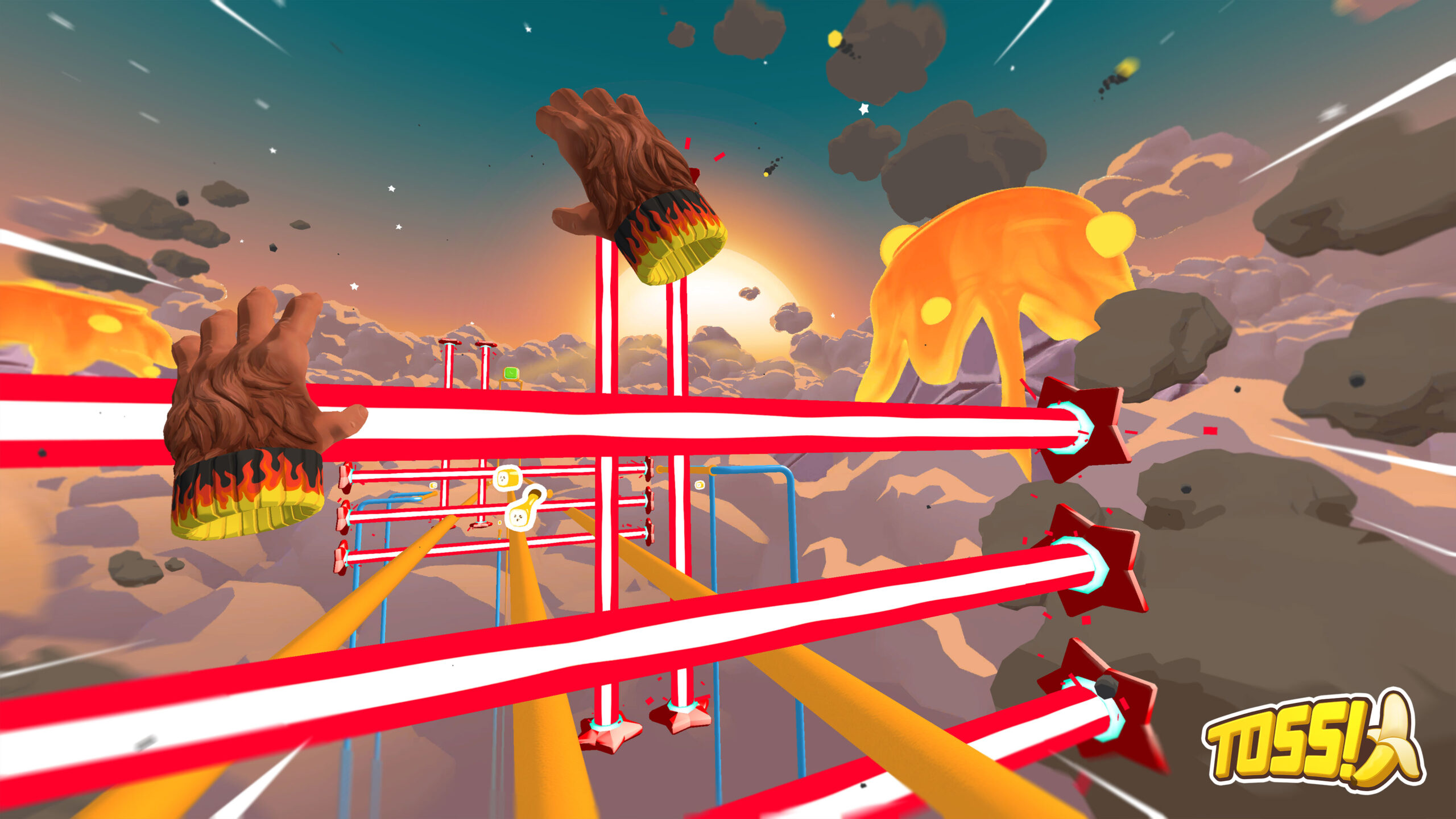 You’ve crash landed on a cloud planet and will need to collect parts to repair your ship as you launch yourself around 75+ playground levels in 9 vibrant cloudscape biomes and rank-up to become a TOSS!🍌 Master.